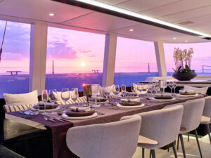Guests can enjoy a variety of water toys, including towable toys, waterskis, SEABOBs, wakeboards, kayaks, fishing equipment, paddleboards, and snorkeling gear, along with a Williams Jet Tender for easy shore access. Based in the Mediterranean all year, “Above & Beyond” provides a perfect blend of relaxation and adventure in some of the world’s most spectacular waters.