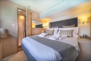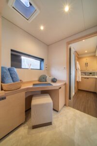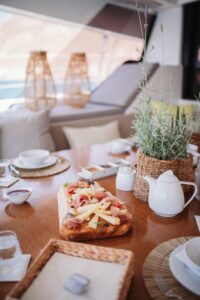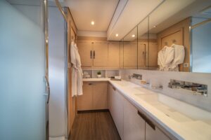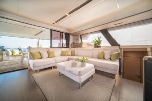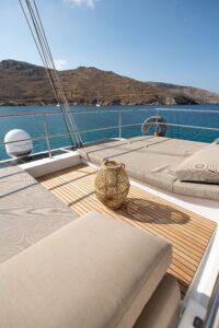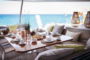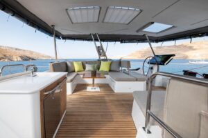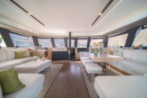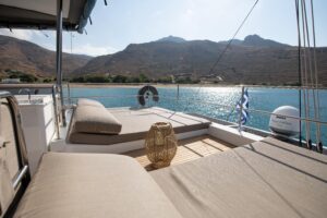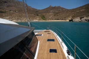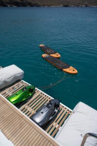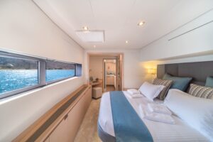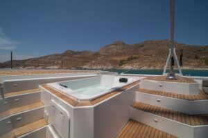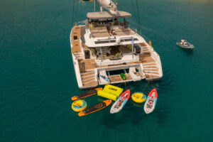The luxurious 20.36m Fountaine Pajot catamaran “Aether” offers a unique charter experience in the Mediterranean for up to 8 guests. Built in 2018, it features four elegantly designed cabins, including a master suite, each with queen-sized beds. Aether’s shallow draft allows for close access to secluded bays and coves, cruising comfortably at 9 knots with a maximum speed of 11 knots. Onboard, guests can enjoy modern amenities like Wi-Fi and well-appointed deck areas for relaxation and viewing. The yacht is equipped with a variety of water toys, including waterskis, wakeboards, kayaks, paddleboards, and snorkeling gear, ensuring entertainment and adventure throughout the journey.