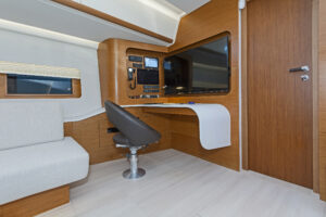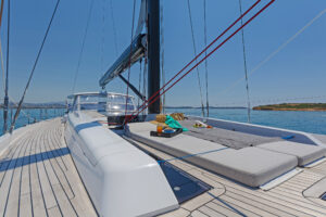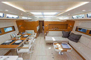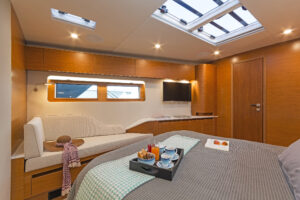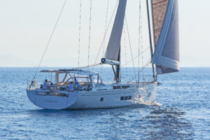 The 67-foot Hanse 675 yacht, named Alizee and constructed in 2017, features an interior that can comfortably accommodate up to six guests in three staterooms. These include a master suite, one double cabin, and one cabin convertible to a double bed, along with space for up to two crew members. Designed to offer an ideal blend of relaxation and sailing perfection, the yacht provides well-balanced areas of light and shade on deck. A prominent design element is the large fixed hardtop, which stands out as a signature feature of the 675. Inside, the yacht’s spacious interiors set a new standard for private sailing luxury.