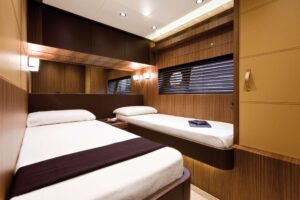 The ANYTHING GOES IV is the epitome of refined Italian elegance and high-performance yachting, built by Riva in 2009 and upgraded to like-new condition during a full 2022 refit. At 28.2 meters, she offers an intimate and luxurious experience for up to 8 guests across four beautifully appointed cabins-featuring a full-beam master suite, VIP cabin, and two twin cabins with ensuite facilities-all served by a professional crew of five. Her sleek planing hull, powered by twin MTU engines, delivers a thrilling cruising speed of 18-20 knots and top speeds up to 26 knots, while zero-speed stabilizers ensure smooth comfort at anchor. With expansive sun decks, a flybridge fit for lounging, and a burgeoning selection of water toys including jet skis, Seabobs, and a Zodiac tender, ANYTHING GOES IV delivers the perfect blend of adrenaline and indulgence in the Mediterranean .
