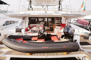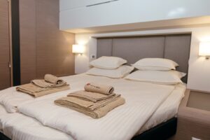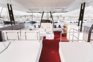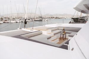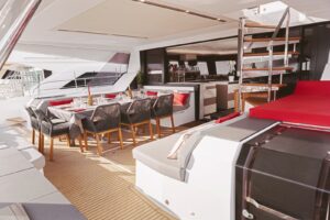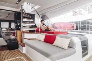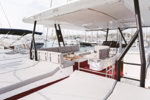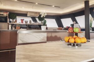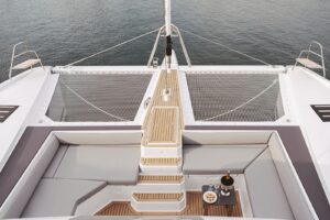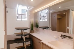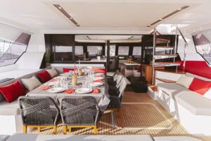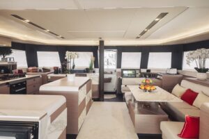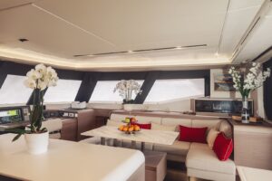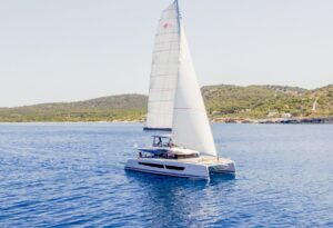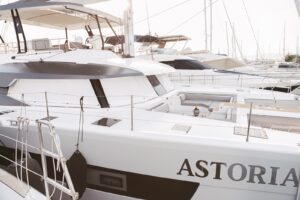 Launched in 2021, Astoria is a Fountaine Pajot Samana 59 flybridge sailing catamaran, designed for up to 10 guests. It boasts a spacious aft cockpit, hydraulic swim platform, sunken lounge seating at the foredeck, and a flybridge with dining, lounging areas, and a bar. The interior features a large main salon with state-of-the-art AV systems, climate control, and a wine cellar. Astoria offers five luxurious staterooms, each with private ensuites, and comes equipped with a variety of water toys. A professional crew of three ensures a tailored and exquisite charter experience.