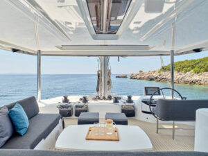 The luxurious charter catamaran “Azul,” a Lagoon 55 model from 2023, boasts state-of-the-art design and is situated in the enchanting Ionian Islands of Greece. This 16-metre vessel exemplifies elegance and comfort, featuring bright, open spaces optimized for natural light and expansive views. It comes fully equipped with all the amenities expected in a high-end charter, such as air conditioning, an outdoor shower, an ice maker, a swim platform, and a water maker, along with a plethora of entertainment options and water toys.