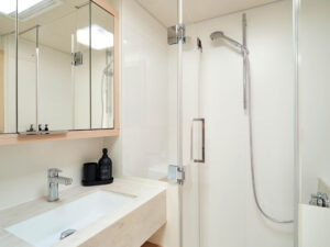 The professional crew of three, consisting of a skipper, chef, and hostess, have their own separate quarters, ensuring utmost privacy for guests. This dedicated team is committed to providing a seamless and luxurious sailing experience, attending to every need and ensuring a memorable stay aboard.