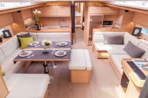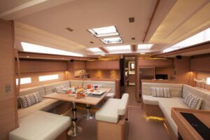 With a length of 56 feet (17.1 meters), DRUNKEN SAILOR boasts a grp hull and is equipped with a Yanmar 110hp engine, achieving a cruising speed of 8 knots.