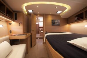The charter experience on DRUNKEN SAILOR is enhanced by a dedicated crew of one, including a captain, who are committed to providing a relaxed and personalized service to ensure all your needs are met. The yacht’s layout includes separate crew quarters, which affords guests greater privacy during their stay.
