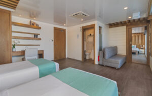 The Endemic Catamaran is a boutique luxury vessel custom-built for exploring the Galápagos Islands in style and comfort. With only 8 spacious cabins, each featuring a private balcony and floor-to-ceiling windows, guests enjoy unmatched privacy and breathtaking ocean views. A dedicated crew and naturalist guide provide personalized service, while the elegant lounge, open-air dining, and sun deck with Jacuzzi create the perfect setting for relaxation between adventures. Combining stability, modern design, and premium amenities, Endemic is the ideal choice for travelers seeking a first-class, intimate Galápagos experience.
