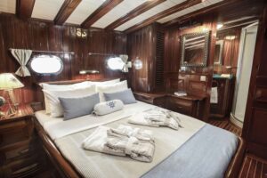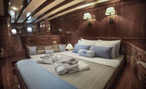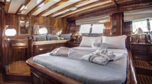 The 30-meter luxury motor yacht “Entre Cielos,” built by Su Marine Yachts in 2004, elegantly combines comfort and functionality for an unparalleled Mediterranean charter experience. Accommodating up to 12 guests in five luxurious cabins, the yacht features bespoke interiors and stable wood construction.