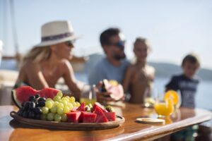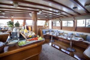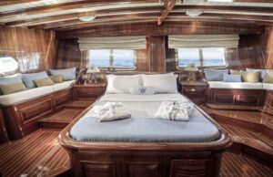 “Entre Cielos” cruises at 10 knots and is fully equipped with an array of water sports equipment, including waterskis, paddleboards, and snorkelling gear, ensuring entertainment for all on board. A 3.8-meter Novurania tender facilitates easy transfers to shore.