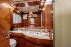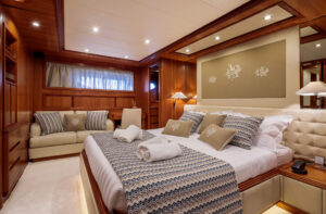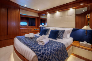 ‘Freedom’ is well-equipped for entertainment with a selection of water toys such as Jet Skis, waterskis, a seabob, and more. It cruises comfortably at 23 knots and can reach up to 33 knots, making it perfect for exploring the Mediterranean’s magical spots. Discover the region’s unique places, cuisine, and experiences with Freedom’s dedicated crew ready to ensure a luxurious yachting experience.