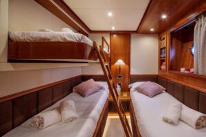 The 23.87m ‘Freedom’ motor yacht, built by Cnsa – Alalunga, offers charters for up to 10 guests in 4 stylishly appointed cabins. Designed for family-friendly vacations with a range of amenities, it features comfortable accommodations, including a master suite and multiple guest cabins, supporting up to 4 crew members for a relaxed experience. Onboard comforts include Wi-Fi, air conditioning, and an advanced stabilization system to enhance comfort at sea.