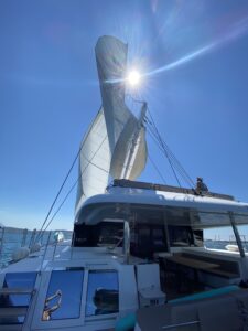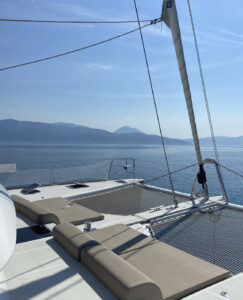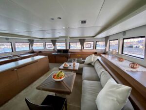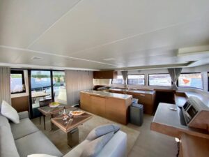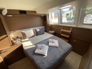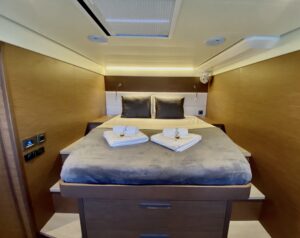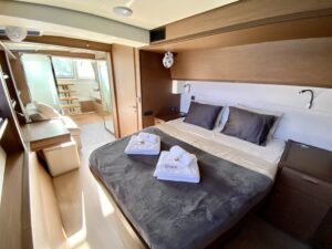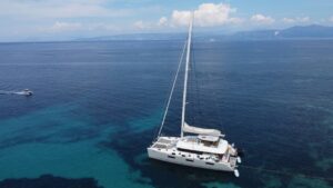 The luxury charter yacht GRACE, a 62ft Lagoon catamaran, sails the Ionian Sea in Greece, offering premium amenities for up to eight guests. Its deck features extensive lounging areas, dining setups, and a variety of water toys. Inside, the elegant saloon and state-of-the-art galley cater to all guest needs, while four plush cabins ensure privacy and comfort. Equipped with modern entertainment options and serviced by a knowledgeable crew, GRACE promises a luxurious and memorable sailing experience.