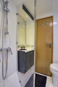 Inside, the saloon is equipped with flexible seating, panoramic windows, and modern décor, complemented by satellite communications and Wi-Fi. For water sports enthusiasts, HIGH JINKS offers a tender, SUP, waterskis, a kayak, and more. The professional crew ensures a memorable charter experience, emphasizing luxury, comfort, and adventure.