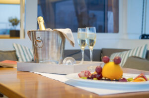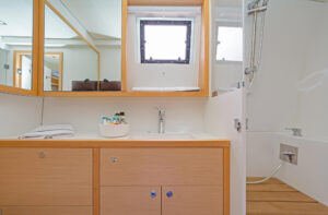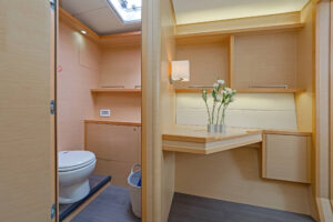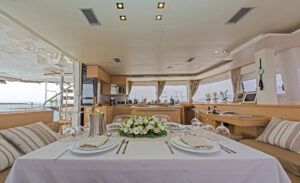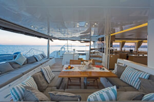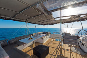 Relax on the teak aft deck, dine al fresco or inside in the panoramic salon, and explore the upper deck for sunset cocktails. Equipped for adventure, the foredeck and extensive bathing platform provide various water toys and spots for sunbathing and relaxation.