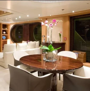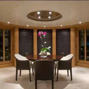 Mercury’s main salon features extensive comfortable seating and stunning panoramic windows that offer impressive views out to sea, in addition to an adjoining dining area that is able to accommodate 12 guests for formal dinner parties. There is also the benefit of a lounge on her bridge deck.