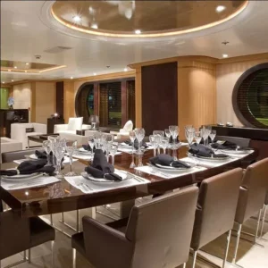 Mercury’s interior layout sleeps up to 12 guests in 5 staterooms, including an Owner’s Stateroom with salon and private office, two VIP double cabins and two twin cabins with Pullmans. She also has 12 crew onboard to ensure 7* service at all times.