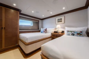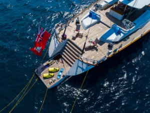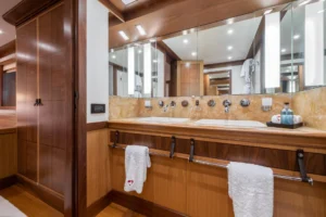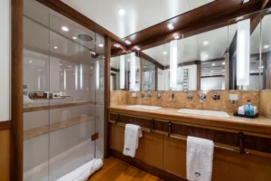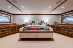 Guest Accommodation: Constructed in 2007, “Mes Amis” provides lavish accommodation in 4 suites, including a grand master suite and three double cabins. Additionally, she can house up to 6 crew members, ensuring a serene and opulent yacht charter journey.