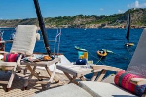 Recreational Gear: “Mes Amis” comes with an array of water toys, including waterskis suitable for all skill levels, two agile SEABOBs for cruising and diving, wakeboards, inflatable toys, and paddleboards.