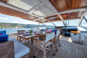 “Mes Amis” is the epitome of opulence and thrill, equipped with state-of-the-art amenities and a plethora of inviting social areas, making it the perfect vessel for a sun-drenched yacht charter escape.