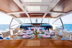 Entertainment & Amenities: The yacht is fitted with modern conveniences to enhance your charter experience, notably an advanced air conditioning system for utmost comfort.