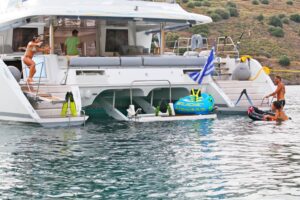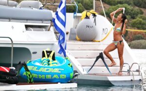 Inside, Nova boasts air-conditioning, Wi-Fi, and sumptuous living spaces, ensuring comfort and connectivity throughout your journey. For adventure seekers, the yacht is equipped with a variety of water toys including waterskis, wakeboards, kayaks, and snorkeling gear.