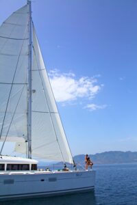 Experience luxury on the high seas with Nova, a 65-foot catamaran yacht built by the French shipyard Lagoon in 2011. Designed to accommodate up to 8 guests, Nova offers four well-appointed cabins, including a master suite, two double cabins, and a twin cabin. With a shallow draft, Nova navigates close to secluded coves, ideal for reef exploration at a cruising speed of 10 knots.