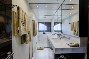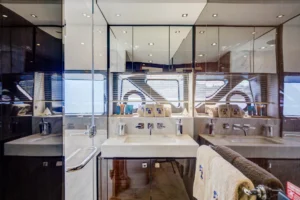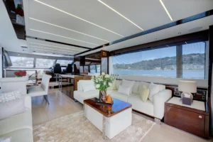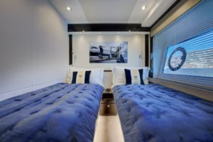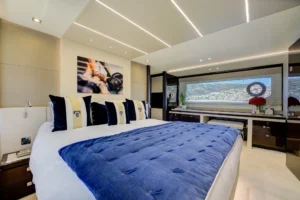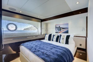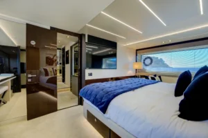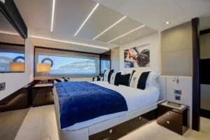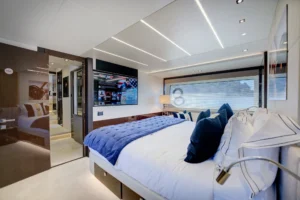 Oreggia unveils a haven of comfort with its capacity to host up to 8 guests across 4 elegantly appointed cabins. The layout encompasses a lavish master suite, a VIP cabin, and two twin cabins, each designed with a touch of finesse to evoke a sense of home on the waters. Alongside, the yacht can accommodate up to 3 crew members, ensuring a seamless and relaxed luxury yacht charter journey.