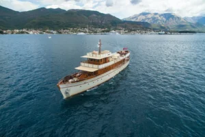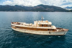 An English yachting enthusiast then purchased the vessel and relocated her to the Cote D’Azur, introducing her to the charter market under the name of “The Classic” in the 1990’s. In the early millennium, renowned Belgian artist Jean-Michel Folon fell in love with her classic charm. Folon organised a painstaking full rebuild to preserve the yacht’s unique historical value and give her a new lease of life. Many celebrities enjoyed their time on board: Churchill visited her, and Madonna even made a film while staying on board.