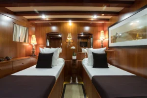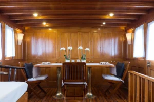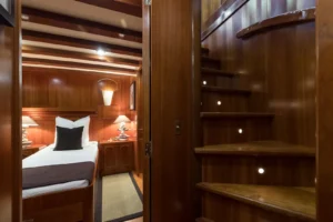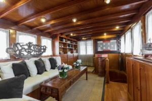 In December 2017, the current owner fell for her beautiful lines and has since undertaken further refits. The cabin set-up was made convertible and the galley was improved to cater to sophisticated charter guests. All wood was overhauled and strengthened, using traditional methods.