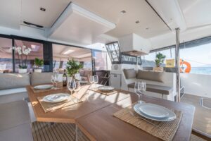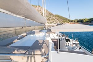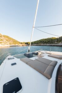 The PI 2 is a luxurious 49-foot Fountaine Pajot Saba 50 catamaran, launched in 2019 and designed for chartering around the Greek Islands. This elegant yacht accommodates up to 10 guests and features a sleek profile and sophisticated styling. The aft deck, foredeck, and flybridge sundeck offer ample leisure spaces for dining, lounging, and sunbathing.