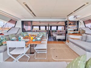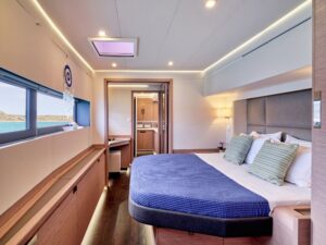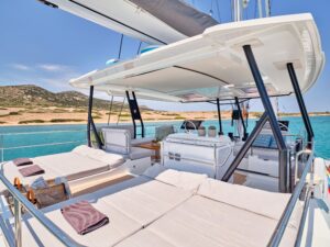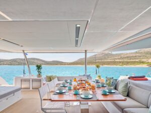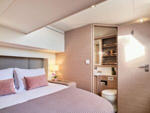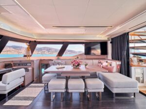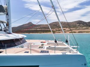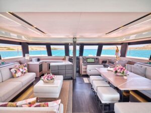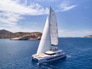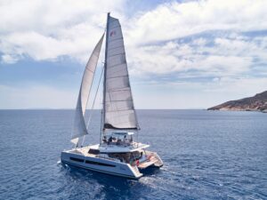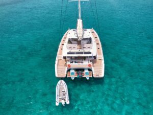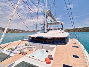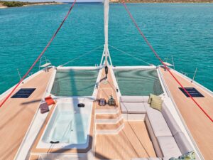 The 67-foot catamaran yacht, Pixie, crafted by Fountaine Pajot in 2022, offers luxurious accommodation for up to 9 guests in four elegant cabins. This yacht features a host of amenities including a deck jacuzzi, full Wi-Fi connectivity, and air conditioning to ensure comfort in all conditions. Powered by twin Volvo engines, Pixie cruises smoothly at 12 knots and is designed with a shallow draft, perfect for exploring near shorelines.
