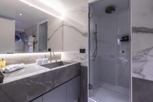 Discover unparalleled luxury aboard the 33.86-meter motor yacht, Project Steel, crafted by Bugari with interiors by Roberto Del Re. Accommodating up to 12 guests in five stylish cabins, this yacht is perfect for families and groups, featuring a master suite, a VIP cabin, a double cabin, and two twin cabins with pullman beds.