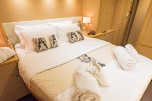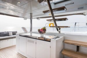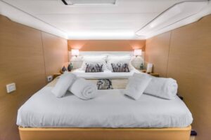 Selene, a luxurious 62-foot catamaran from the French shipyard Lagoon, built in 2015, offers a splendid charter experience in the Mediterranean. With accommodations for up to 10 guests in five double cabins equipped with queen-size beds, Selene combines comfort with elegance. The yacht also supports three crew members to enhance the onboard experience.