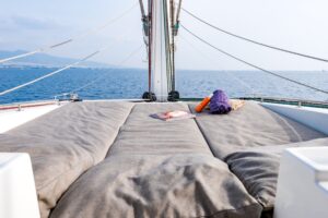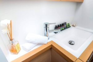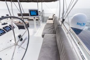 Featuring Wi-Fi, air conditioning, and an array of water toys including towables, waterskis, wakeboards, kayaks, and scuba diving equipment, Selene ensures entertainment and connectivity at sea. She cruises comfortably at 8 knots, with a top speed of 10 knots, and includes a 14’9″ tender for easy shore access.