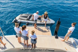 Water Toys & Activities: The yacht houses an array of water toys, including Jet Skis, waterskis, diving equipment, a seabob, wakeboards, kneeboards, paddleboards, and snorkelling gear. A 4.88m / 16′ Castoldi Tender ensures easy transportation between the yacht and the shore.