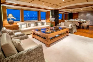 Charter guests will find Sirocco’s living space light, airy and practically designed. Its deck space is perfect for sunbathing, relaxation and taking in the views. The saloon is located on the main deck and incorporates a vast lounge area. The main deck offers both enclosed and alfresco dining for twelve guests and a world class chef to cater for every culinary request.