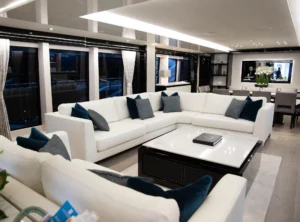 Delivered in 2019 by acclaimed British shipyard Sunseeker, SONISHI promises to make a splash on the charter scene. Built to RINA classification rules, this powerful yacht has an impressive top speed of 22 knots and cruises comfortably at 12 knots.