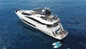 Indulge in an unparalleled voyage aboard the Stardust of Mary, a 26.3m/86’3″ elegant motor yacht meticulously crafted by the renowned British shipyard, Sunseeker. With its interior masterfully designed by the acclaimed Sunseeker Design Studio, this vessel embodies a blend of modern elegance and maritime tradition, promising a yacht charter experience that transcends the ordinary.