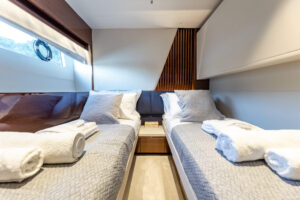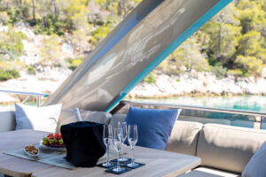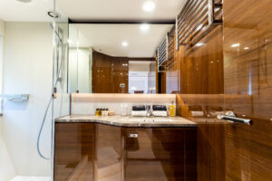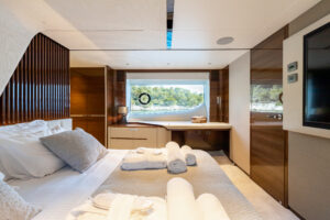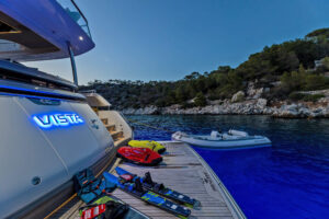 Vista is equipped for adventure and relaxation, offering an array of water toys including waterskis, SEABOBs, paddleboards, and snorkelling gear. Guests can also enjoy modern amenities such as underwater lighting, onboard Wi-Fi, and air conditioning. A 4.35m Williams Jet Tender facilitates easy transfers from ship to shore.